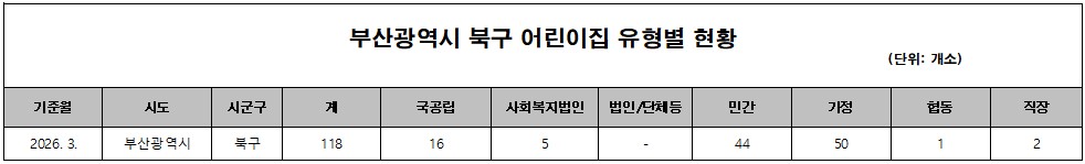 2026³â 3¿ù ºÎ»ê±¤¿ª½Ã ºÏ±¸ ¾î¸°ÀÌÁý À¯Çüº° ÇöȲ