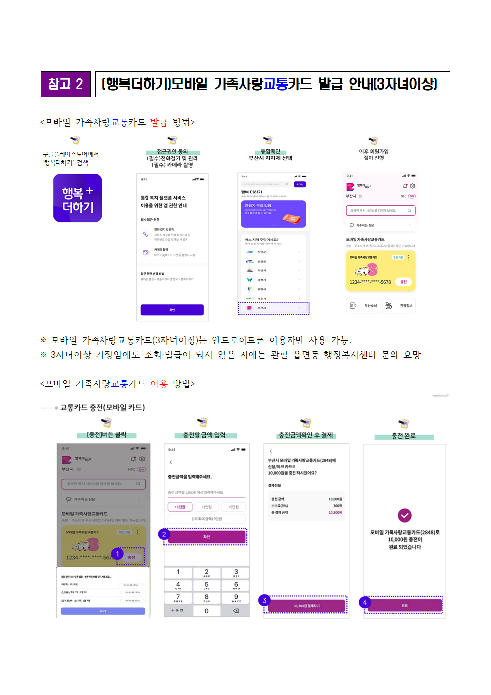 ¡ÛÁÖ¿ä³»¿ë: ºñÆÐ½º Á¾·á¿¡ µû¸¥ 3ÀÚ³à ÀÌ»ó¿ë ¸ð¹ÙÀÏ ±³ÅëÄ«µå º¯°æ ¡Ûº¯°æ»çÇ×: (º¯°æ Àü) ºñÆÐ½º →(º¯°æ ÈÄ) Çູ´õÇÏ±â ¾Û ¡Û¹ß±Þ¹æ¹ý: Çູ´õÇÏ±â ¾Û ´Ù¿î·Îµå - ¸ÞÀÎȸ鿡¼ “ºÎ»ê½Ã” ¼±Åà ÀÌÈÄ ¼ºñ½º ÀÌ¿ë ÀýÂ÷ ÁøÇà ¡Û»ç¿ë¹æ¹ý: ÆíÀÇÁ¡, ÈÞ´ëÆù ¾Û ³»¿¡¼ ÃæÀü ÈÄ »ç¿ë(´Ü, ÈÞ´ëÆù ¼Ò¾×°áÁ¦´Â '26. 1. 3. ÀÌÈÄ °¡´É) ¡ÛÀ¯ÀÇ»çÇ×: 3ÀÚ³àÀÌ»ó °¡Á¤ÀÓ¿¡µµ ¹ß±Þ¾ÈµÉ ½Ã À¾¸éµ¿ ÇàÁ¤º¹Áö¼¾ÅÍ ¹æ¹®ÇØ ¼ö±â µî·Ï ÀÌÈÄ ¹ß±Þ. iOS ÀÌ¿ë ºÒ°¡